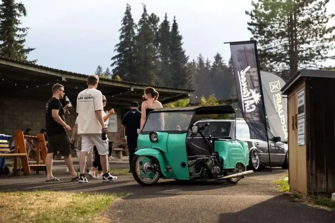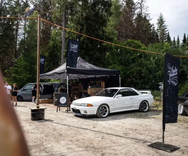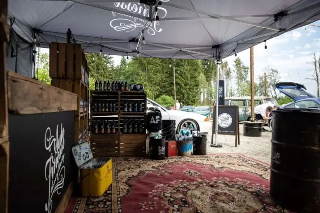 在Skyline GTR32的带领下,我们穿过了法国,来到了德国南部,随着我们的大众运输车来到了现场,在所有小伙伴的同心协力下,只用了不到2小时的时间就搭建好Tief Im Wald 2023的AF大本营。
