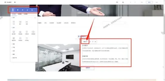无编程建站第三步:小编下面以建站工具中的电脑网站搭建举例说明,点击进入电脑网站模板的编辑页面中,在编辑页面上不仅可以直接编辑电脑网站的图片和文字,左侧还有五个专业设计网站时会用到的功能和设置,只需点击就能使用。