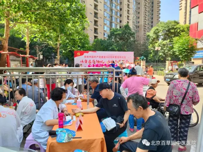 今年是中国共产党成立102周年,6月30日上午,在“七一”建党节来临之际,朝阳龙祥社区广泛深入开展庆祝活动,北京百草园中医医院为此次活动提供医疗保障支持,用自己的实际行动,为党献礼。