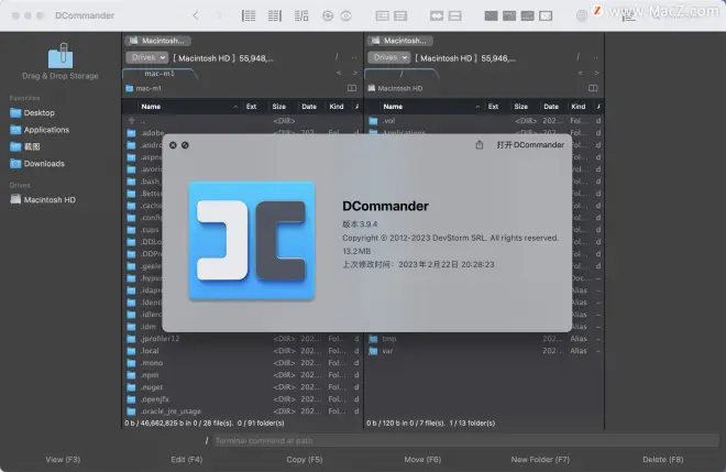 DCommander for Mac是一款非常优秀的双窗格文件资源管理器,可让您完全控制计算机的文件系统。DCommander 针对快速访问和用户友好性进行了优化,相比 Finder,增加了很多方便实用的功能,如权限显示、系统隐藏文件显示、ZIP压缩包浏览、集成系统终端、活动监视器等应用,完全拖拽操作等功能,简单高效,节省你的工作流程!