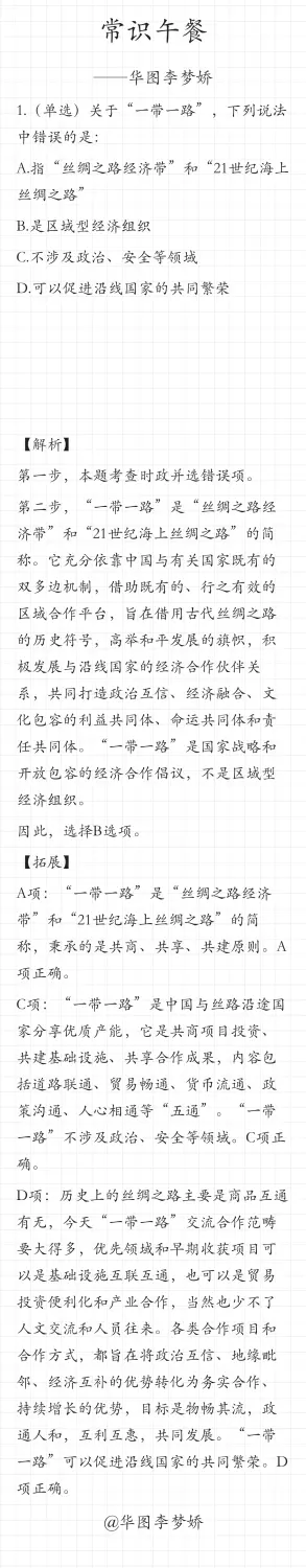 1.(单选)关于“一带一路”,下列说法中错误的是: