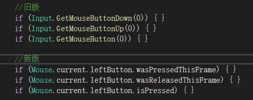 新版:Mouse.current.leftButton.wasPressedThisFrame;