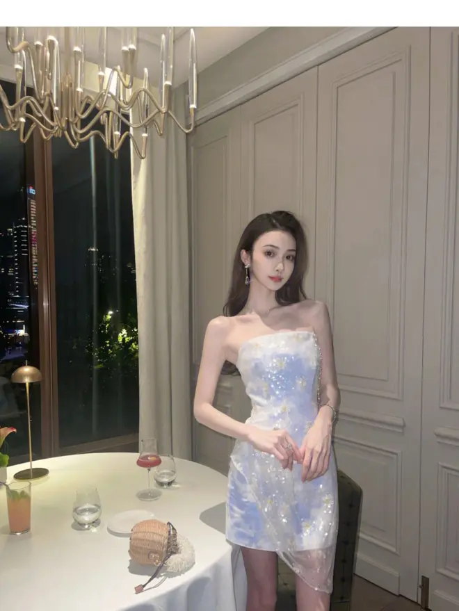 法式网纱连衣裙女装2022年夏季新款设计感轻奢气质修身包臀晚礼服的评论 (共