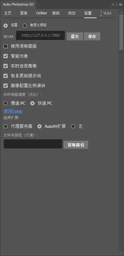 于是捣鼓了一上午Photoshop内置SD插件,不用来回切换丝滑多了,但是原版没有中文支持,英文版虽然也看得懂,但是对于非英语母语的人来说,看起来还是有点费劲。