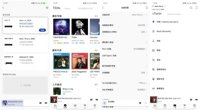我个人平时的高频使用习惯是 USB DAC 模式、内置的 TIDAL 播放、以及网易云 DLNA,之前常用的 Spotify Connect 功能在上了阿根廷 TIDAL 的车以后逐渐被抛弃,但在功能实现层面依然是非常方便。