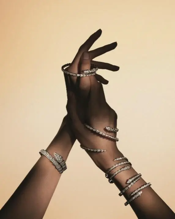 不同于其他意象,宝格丽灵蛇图腾始终与女性世界紧密交织。在摄影二人组Scandebergs的镜头下,灵蛇元素以曼妙盘绕之姿凸显不同时代女性的魅力,宛如第二层肌肤般与佩戴者融为一体。这是一种风格上的蜕变,代表了女性地位及其自主权的发展演变。广告大片以意蕴悠长的美学手法精心刻画出宝格丽Serpenti系列作品柔韧灵活的灵蛇造型,从女性的妩媚身姿到珠宝的迷人佩戴方式,无不体现灵蛇独具魅力的蜿蜒线条与灵动体态。
