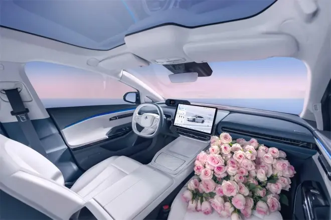 内饰延续腾势D9的设计风格,中控台配备大尺寸液晶屏,同时还有全液晶仪表以及副驾驶屏幕,做工和用料都十分考究,同时前排座椅支持非常丰富的电动调节方向,整车长宽高分别为4860/1935/1602mm,轴距为2940mm,前、后排和后备箱空间都非常宽敞。