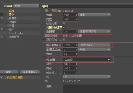设置宽高,分辨率,胶片宽高比(影视只有两种比例16:9和9:3,如果做平面设计根据情况调整),像素宽高比不改,帧频(电影24、电视25),渲染范围(当前,手动,全部)。