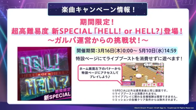 现在,超高难度新SPECIAL的「HELL! or HELL?」在期间限定的特设页面上可以游玩。比之前的魔王谱面更加困难。