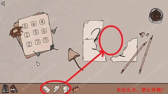 47.点击左边的桌子,将3个密码纸条拼到密码上,得到密码:3251。47