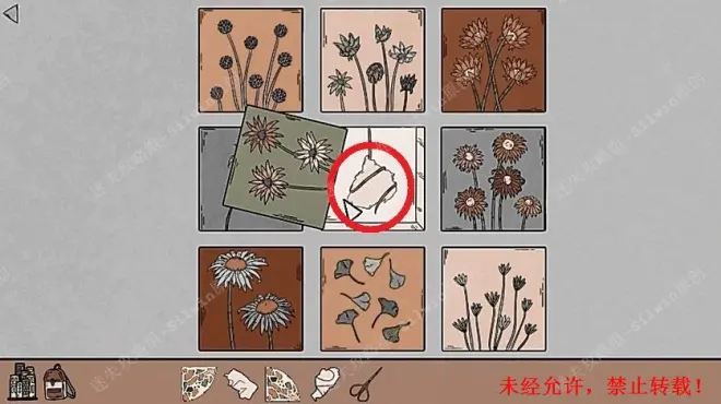 39.按照在左边的桌子得到的数列,调整方块的位置。(由上到下、由左到右,花朵数量为:8、6、4、1、3、5、2、7、9)。完成从中间的格子拿到密码纸条。39