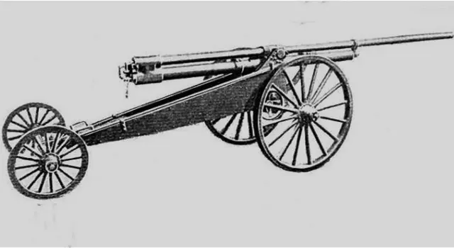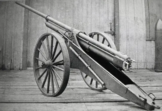 因为发射压力小,火炮炮管不用造得太厚,并且射击后坐力很轻,因此这款火炮的重量很轻,只有450千克,安装在轮架上用马匹牵引行军。为了尽量提高炮弹初速度,炮管长度达到了4.25米,好得到更长时间的加速。