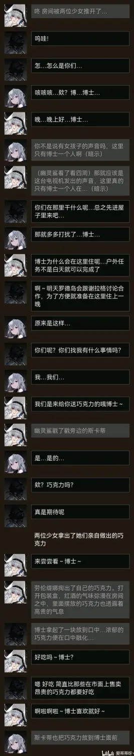 » (情人节聊天室)当斯卡蒂和幽灵鲨在情人听说博士开了房会怎样?