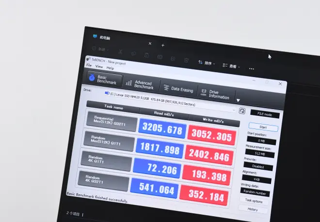 我手上这台极摩客M2预装的硬盘品牌为雷克沙,通过软件测试可以看到整体读/写速度表现还不错,达到了3000MB/s以上。