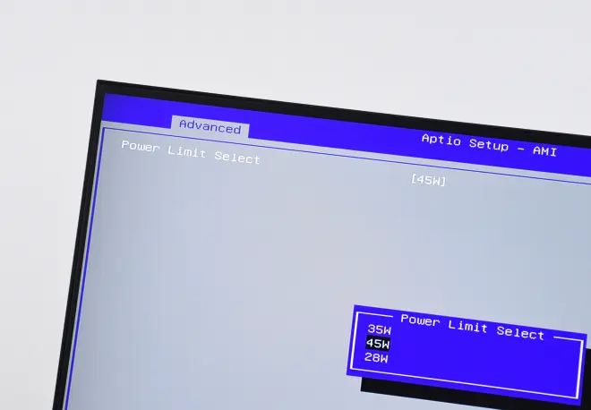 对了,在开机运行极摩客M2时通过键盘上的F7进入BIOS界面,可以设置极摩客M2的TDP,目前官方共有28W/35W/45W三个档,出厂默认是35W,可按需求自行设置。