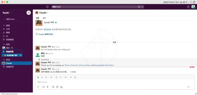 浏览器访问 https://slackbot.anthropic.com/slack/install,授权允许
