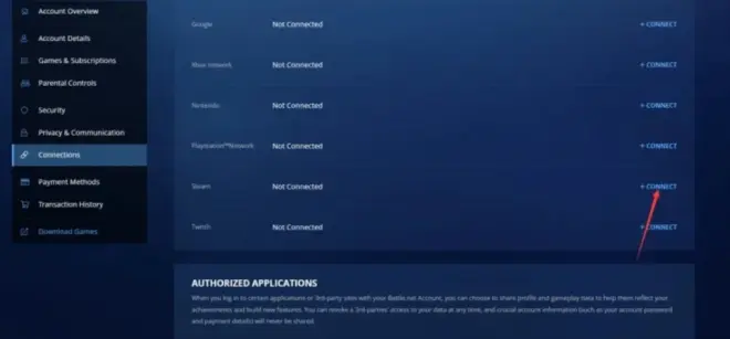 在Connections页面中,选择“Steam”选项进行绑定。