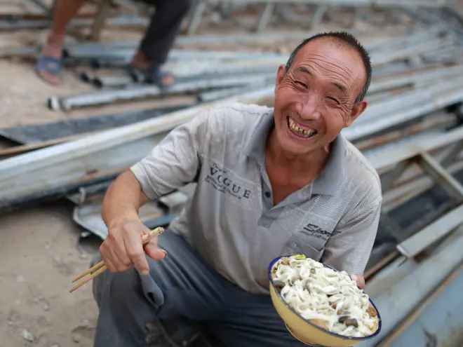 如果一个农民工嘴里啃着馒头,以自豪的口吻,对着别人讲道:“你们看,这多漂亮的高楼大厦,我参与建设的。”