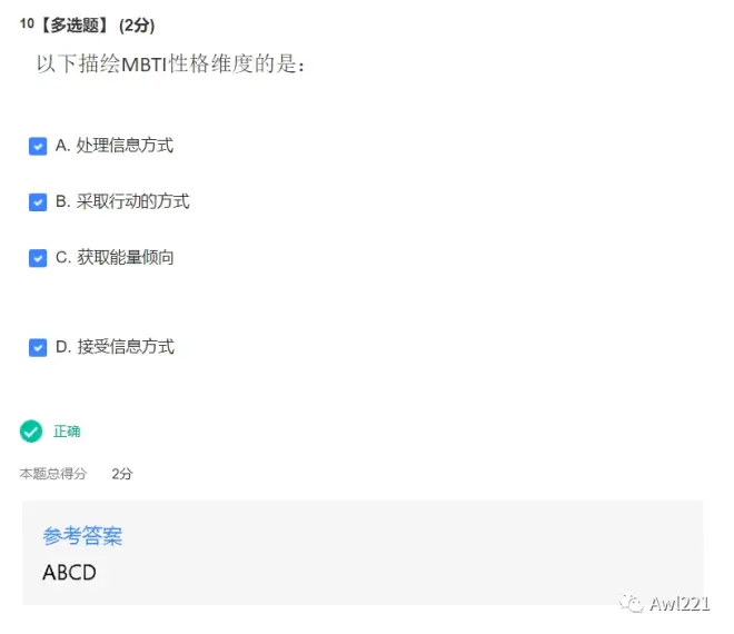 答案:内向,直觉,思考,判断