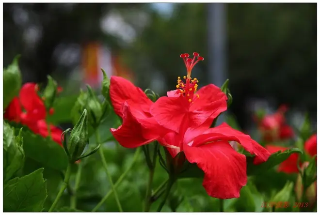 而南宁市花——朱槿花,更是遍布城市的每个角落,一年四季绰约多姿,抒芳吐秀。处在最顶层的美丽异木棉,粉红的五个花瓣一簇簇宛如金色的朝霞涂抹城市上空。这种大腹木棉来到南宁安家不过几年,便已成家立业,生儿育女。在南宁,三月里,有木棉花开红艳艳;十月中,有异木棉开花粉扑扑。两种木棉,一红一粉,一脉相承延续至冬季。满树繁花的紫荆花更是与美丽异木棉争奇斗艳,多姿多彩。圆润清脆的桂花犹如挂满枝头的粒粒珍珠,散发着“清可绝尘,浓能远溢”的甜蜜清香。