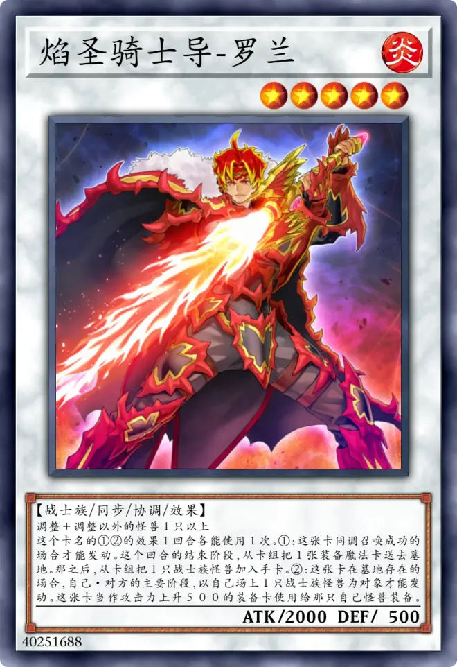让烟玉进入竞技领域的是“焰圣骑士”这个系列的出现。【焰圣骑士导-罗兰】在自己被同调召唤的时候,能够从卡组将1张装备魔法卡送入墓地。而【焰圣骑士帝-查理】则是可以在回合结束的时候,将墓地的1张装备魔法卡装备到自己身上,随后选择场上的1张卡破坏。