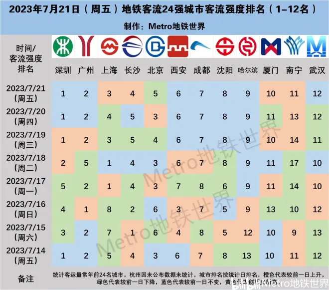 7月21日为礼拜五,深圳客流强创历史第二,大连客流量创历史第三,哈尔滨、厦门客流量创历史第四。