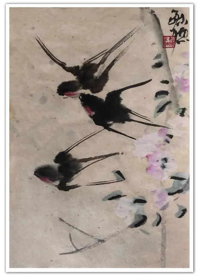 其艺术博综集粹,渊源广大,由近现代之吴昌硕、齐白石、潘天寿诸巨匠,追溯至扬州八怪、八大山人、青藤白阳,悉为己用,蔚为一家。
