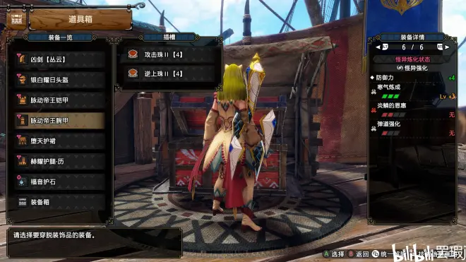全身一等效,护石6等效,并且为了最大程度降低门槛没有选择炼化出寒气,选择了冰呪三件套直接出寒气三,只需要炼出守势,攻击看破超心弱特等等通用的能用珠子补齐的一等效即可,护石锁定翔虫使来炼化,很容易就能炼出配装中用到的这种6等效护石,这些水平的装备纯绿色玩家也能非常轻松地肝出来