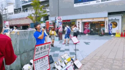 好……好快的一切。眼前的每一个人似乎都被按下了加速键,行色匆匆,甚至有游客想要停下来拍几张车站照片都会被来不及避让的行人撞到,自己仿佛闯入了电影里信息量最密集的一幕画面里。人流之中似乎发现了主角,一个小哥站在广场上全情投入低唱歌,旋律熟悉质朴又足以打动人心。走近一看介绍,他叫笠井俊佑,一位最典型的来东京追梦的音乐人。看着旁边的AKB48咖啡厅,瞬间感动,把午饭预算投了出去,加油哦,期待以后能在其他地方再听到你的声音。