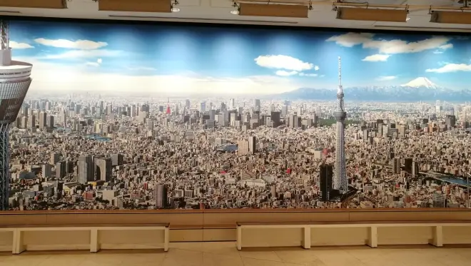 展馆里一张巨幅动态卷画展示着整个东京城的面貌,从东京塔一直到天空树。这种信息量爆炸的画面让我想起了上海世博馆里类似的动态清明上河图,一直非常喜欢这种细节铺满每一寸空间的艺术风格,记得是有一个专门的流派形容的,可惜忘了叫什么。