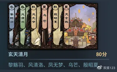 开局每人10张手牌,每到自己回合就可以打出一张手牌,同时拿走公共卡池一张相同属性(春、夏、秋、冬)牌,放入自己的牌库。获得打出去的手牌+公共卡池拿走牌的基础分,卡牌中存在固定的组合,如果完成组合获得额外加分,打完10张手牌,分数高的一方获胜,平局则显示都获胜。