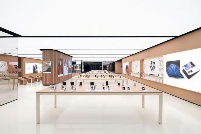 门店主打“人本主义设计”理念。与此同时,OPPO广州旗舰店不但拥有常规的零售服务,而且还在门店内新增了功能区、服务区等空间区域,给用户带来了更优质的科技体验和售后服务升级。