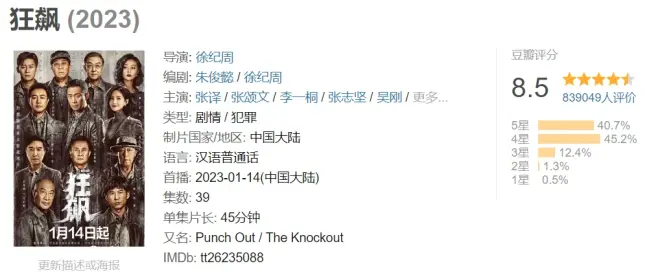 豆瓣评分8.5,打分人数83.9万,是豆瓣今年打分人数最多的剧集。