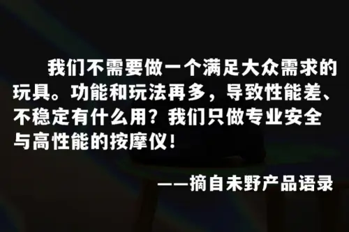 未野曾为全球多家国际护理品牌提供马达传动、调校相关技术解决方案。为了做到高性能、不会对肌肉造成二次伤害,它家不搞多余花哨功能和玩法,死磕七八年,升级20多次,优化100多个性能细节!只为达到性能巅峰!且稳定性较强、衰减度更低、精准度更高!它家首创十大高性能与不伤肌肉的黑科技,比如双通道核定传动技术,3D动平衡技术,以及ARS牵引调校技术等,性能拔尖且肌肉损伤率最低!