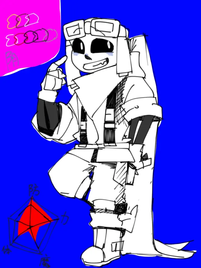 burglar burglar,英译:布格伦 男,身高170,性格偏向开朗,外向,爱社交,灵魂状态(十字架项链),颈椎,以及桡骨,尺骨和掌骨成灰黑色,名字来源ink,有一次他无意间碰到了布格伦的手掌,顿时使他好似失去了什么东西一样,他认为布格伦有一定的特殊能力,和偷走东西差不多,布格伦的学习速度也是超于常人,借由此取名为burglar 十字架项链:是布格伦的中心,也是他的灵魂,当灵魂碎裂的时候,他即将消散 能力:倒流部分时光(注意,这里只是部分时光,他不能完全倒流时间),压制能量,抵御任何疾病痛苦,让宿主可以以短暂的时间恢复原状,这里也是最不能碰的地方 本人能力:当灵魂依旧存在的时候,防御力达到高值,以至于无法看清数据,但同时压制的力量不会展现出来,只有情绪波动,或者遭遇灵魂破碎时才会出现现力量暴涨时 burglar不喜欢别人碰,尤其是伤口处,那里是最不能碰的境地,也就是胸口,他无法看见error的蓝线,在他的视野里,大多数会以空白的形式展现出来,但是他可以分清色彩,error的蓝线就隐藏在这没法看见的空白处,至此,也就导致他无法看清蓝线,error借由ink之手,杀死了第一次来到这里的他 目前最大爱好是au旅行,偶尔也会画画,不过初次入世的他只经历了两个au(当不再进行au旅行时,他会跑去omega线玩几天) 纸中世界:是布格伦为自己创造的世界,里面大多数只有黑白的线稿和没有画完的人物,唯一比较完整的是papyrus,但依旧没有脸庞,在受到情绪波动导致的痛苦或有危险时,他会来到这个地方,这里是他唯一安全的“避风港”,这里也会让他拥有家的感觉和拥抱 代码调换:当代码出现形式的时候,项链会发出一丝光,届时,他会拥有这个代码au的能力 创造力:布格伦拥有创造者的能力,但是他不喜欢使用,但是呢,这种创造能力,他只会用在逃跑上 窃取代码:布格伦常年戴着一双手套,等有他需要的代码时,他会用脱掉手套的手去摸,但是这种能力他也很少用,所以拿到的代码也比较少(补充:代码虽然可以复制对方的特性和能力,但无法复制对方特有的东西,例如:ink身上的二进制花纹) 武器:也不能说是武器,因为武器这种东西他不确定(有时候是ink的毛笔,有时候是一些枪支一类的) 生日:4月1日 关系:remnant(唯一朋友)core(友好【burglar:非常喜欢到她那里玩】)ink(敬而远之) 比较严重的路痴,有时候会严重忘记东西,虽然有的东西他是永远不会忘 最害怕回忆不好的事情,情感是他未触伋到的领域,当有情感一系列的问题时他会表现的十分空洞,这种心灵上的伤口是不会恢复正常的 有时他特别喜欢看热闹,但有为看热闹的原因总是会迷路,会迷失方向感,为了看戏挑逗对方(原本不会去打架)去伤害他敌人 身体重生具有不稳定性,也会有10%的嵌合率,通常会体现在灵魂不稳定暴露,连骨都不是,灵魂不完整或缺失的表现上,重生后会失去一小部分的记忆,依旧会记得重要的事情 绝对中立,但是会绝对的信任朋友,并且不顾一切去赴死保护 外貌