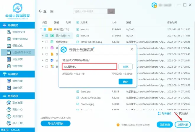 当您遇到联想u盘数据丢失问题时,不妨下载试用云骑士数据恢复软件,通过免费扫描和预览等操作帮助找回丢失的数据。另外,如果SD卡、CF卡等外接存储设备也丢失了数据,同样可以参照上面的方法进行恢复。