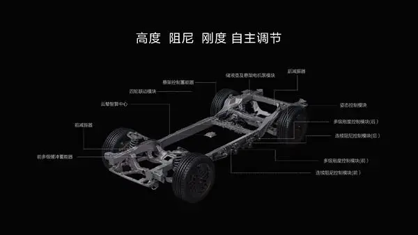 同时,云辇-P还深度融合摄像头、激光雷达等多个路面感知元件,可识别前方5-150m的道路特征并输出高程曲线,并针对性的提前预设调整悬架阻尼应,具有精准探测计算、快速联动调节等优势,大幅优化路面颠簸对舒适性的影响。