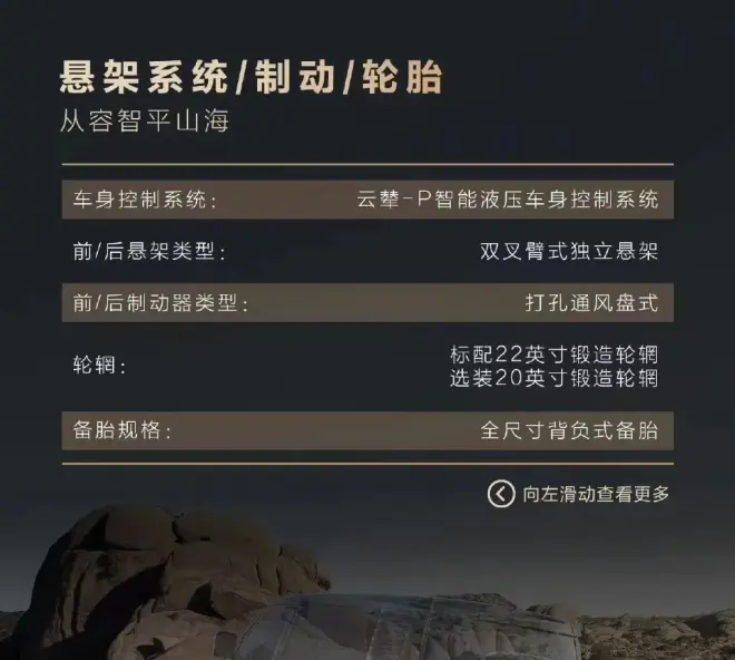 具体来看,底盘方面,仰望U8豪华版首次搭载“15+1”种驾驶模式,细分为10种驾驶模式、5种行驶功能以及1个全地形自适应反馈系统。
