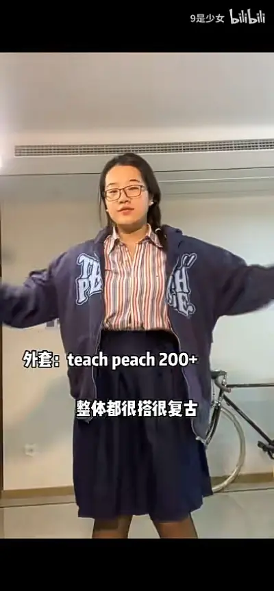 3.字母外套搭配显得整体很复古