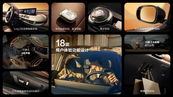 值得一提的是,缤果补充了以前微型车在安全性能方面的不足。在硬件设施上,新车配备主副驾安全气囊,全车25处关键防护部位使用了超1500MPa的超高强钢,电池包历经多维度严苛的高安全测试,达到电动汽车零部件最高防尘防水等级IP68级。主动安全方面也十分丰富,有电子手刹、倒车影像、定速巡航及蠕行功能等,保证驾乘安全。