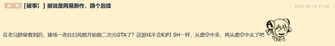 实际上在8月14日便有消息传出网易将推出一款二次元开放世界游戏,该贴引起玩家大量讨论,有玩家该游戏是否会是“二次元GTA”并表示对该题材不看好。同时在该贴中也有大量网友将脉脉上的消息搬运过来,证实网易的确有在研的二次元都市开放世界项目。