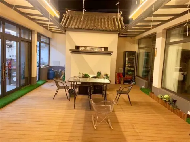 亮点特色:民宿为新中式三合院,保持了传统的建筑风格,极具中式之美,小院白墙黑瓦,门内有影壁墙,院内木板铺地,青砖小瓦花阁窗,好一派悠闲自在。 院内东厢房是厨房和餐厅,正房和西厢房为客房,到了晚上,这里的装饰的小灯也亮了,很有氛围感。