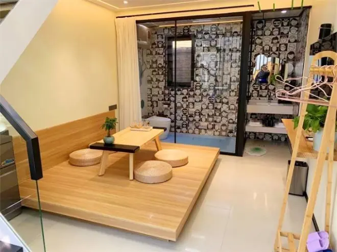 楼上楼下两张大床,能住四个人,适合全家周末放松游,有茶台茶具一应俱全,舒适度爆棚,整体风格朴适自然,颜值颇高,惹人喜爱,内部装修比较有设计感,床品、家具、浴缸洗浴用品都是高端系列产品。