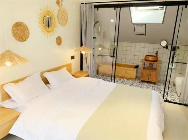 房间设施:整院7间客房,能容纳20人住宿,房型有大床房,亲子房,loft阁楼,星空房,室内卧室有全景透明玻璃天窗,晚上睡觉可观赏星辰,清晨阳光照进客房,全新的一天即将启程。室内宽敞又明亮,全屋智能设施,房间设计偏向温馨的家庭感,童趣满满,小朋友一定会喜欢。