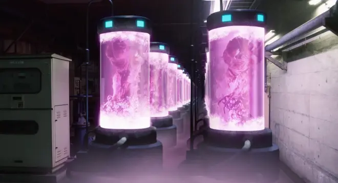 在剧中,除了被消灭的那只成年体雷维拉,在诺瓦伊欧的实验室中,还有无数浸润在培养液中的幼体雷维拉。