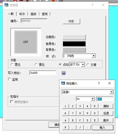 按钮输出:地址设为0X800,对应PLC地址为%QX100.0