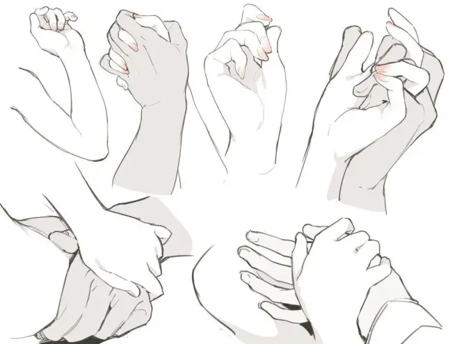 第一步:运用体块概括,先把手部给概括出来,而不是一上来就开始画手部的细节。