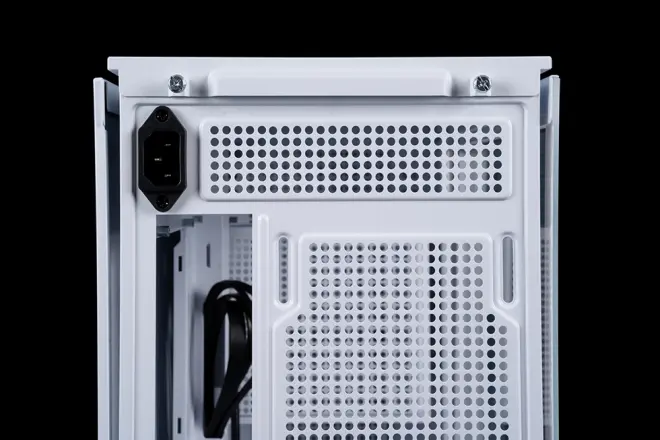 机箱的背面,主板区域采用大面积开放设计,更方便扣具的安装。围绕主板区域,设置了7处过线孔和18个理线桥,同时35mm深度的藏线空间,优化了理线过程。背部左侧和右下角提供了2个2.5寸硬盘安装位。