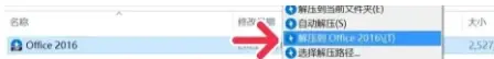 1.鼠标右键解压到“office 2016”