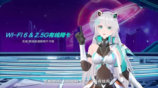 华硕B760天选主板身披大面积月光银装甲,加上魔幻青专属配色和钻切工艺的TX LOGO,刷新了次元美学的新高度!PCB上还印有“Born to be different”和天选专属图形,寓意着这款天选装备天生与众不同!不止有融合天选姬全新形象的个性彩盒包装,连BIOS界面和配套软件都有天选姬新造型的身影,助你调校出最适合你的专属“天选机”!